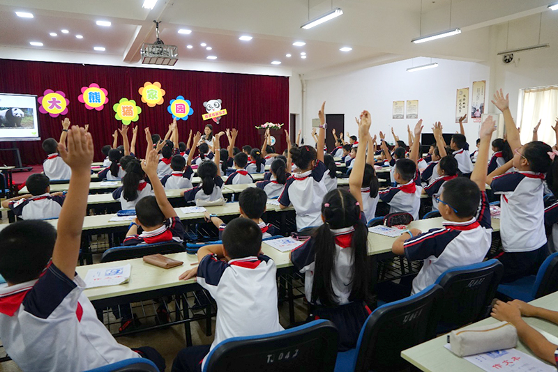 上午参会嘉宾为各试点学校教师颁发熊猫讲师聘书及《大熊猫家园》教材。随后成都共享自然教育中心冯睿曦老师和中国作家协会谭楷先生现场示范授课,为学生展示和讲解了许多大熊猫成长的知识,学生们都听得津津有味,现场气氛热烈,教学效果显著。下午冯睿曦老师为试点学校教师进行培训,详细讲述了教材的编写思路及使用方法,老师们也都积极参与,探讨如何更好地使用《大熊猫家园》一书。